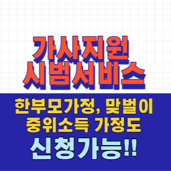 지금까지 가사지원 서비스 시법사업 : 신청자격 및 서비스 내용(맞벌이, 중산층, 한부모가정)에 대하여 알아보았습니다.
