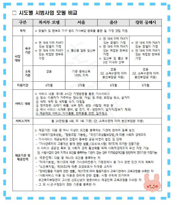 가사지원 서비스 사범사업 모델 비교