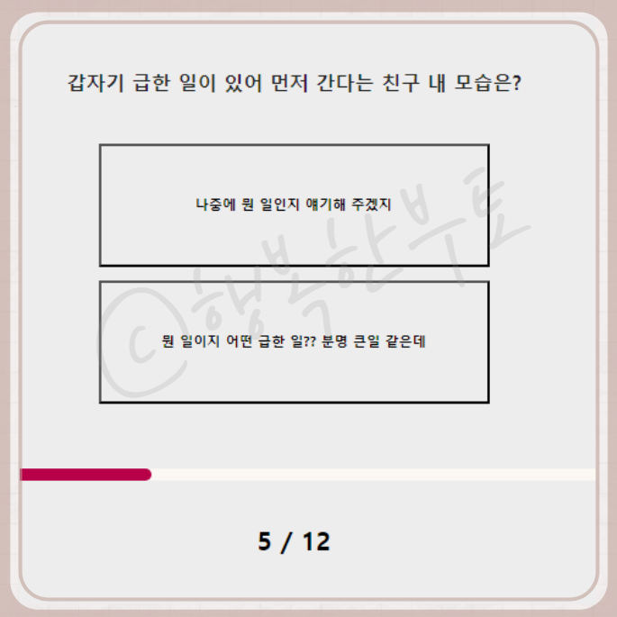 갑자기 급한 일이 있다며 먼저 간 친구는 걱정되긴 하겠지만 나중에 뭔 일인지 듣는 편이라 첫번째를 선택했습니다.