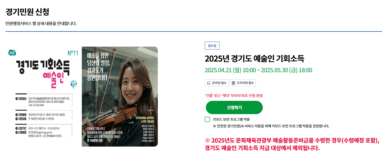 | 예술활동증명 | 유효한 예술활동증명서 보유 | 지원 대상 |