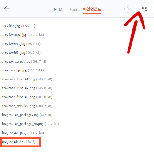 누르신 후 아까 다운로드하였던 'ads.txt' 파일을 첨부해 주세요