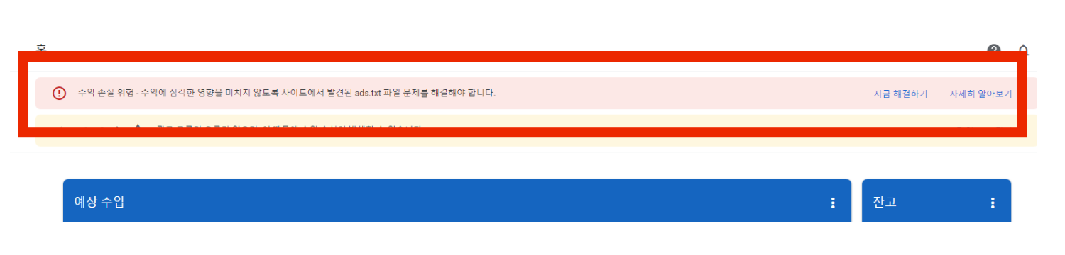 하지만 오늘 애드센스는 다른때와 다르게 창이 생겼습니다.