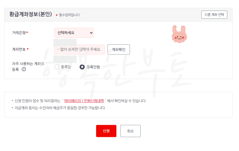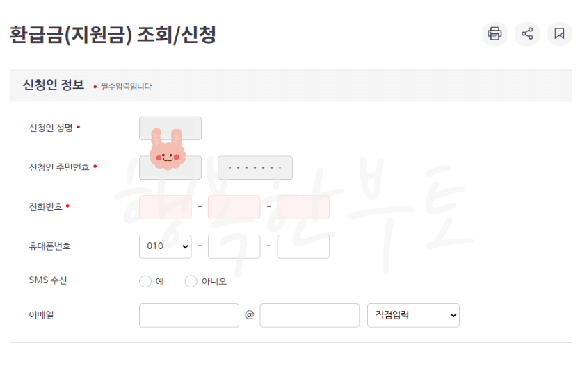 신청인 정보와, 환급계좌정보를 입력합니다.