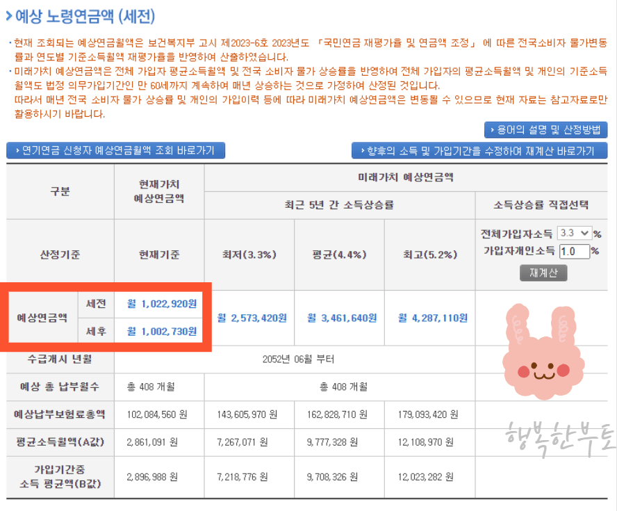 현금보험료 상세내역과 기타 상세내역, 예상연금월액(노령연금) 내용을 확인할 수 있습니다.