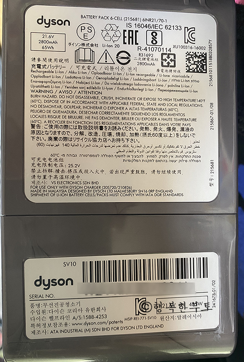 등록하실 다이슨 제품의 시리얼 넘버를 확인해 주세요