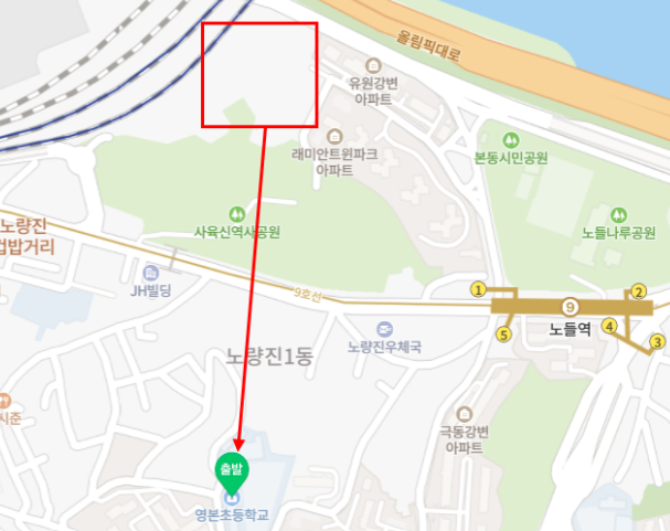 동작구 수방사는 지하철 1호선, 9호선 노량진역과 9호선 노들역이 도보 5~10분 거리에 있습니다. 지하철 9호선을 이용하면 강남까지 30분 이내에 도착할 수 있습니다. 다만 서울영본초등학교는 도보 18분 거리에 있습니다.