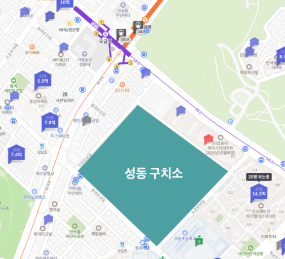 성동구치소는 송파구 가락동 일대에 위치해 있으며, 강남 3구에 속하는 만큼 송파 생활권의 인프라를 충분히 활용할 수 있습니다. 또한, 우수한 학군을 갖춘 입지에 위치하고 있습니다.