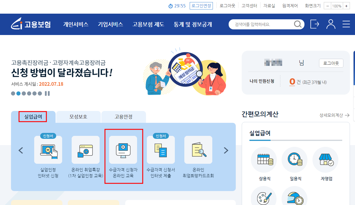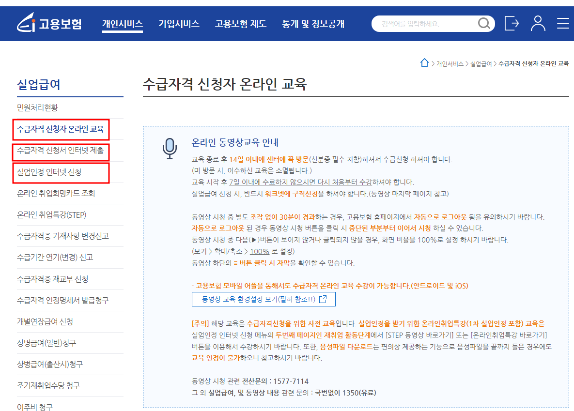 ▶ 고용보험 사이트에서 수급자격 신청자 온라인 교육을 들어야 합니다.