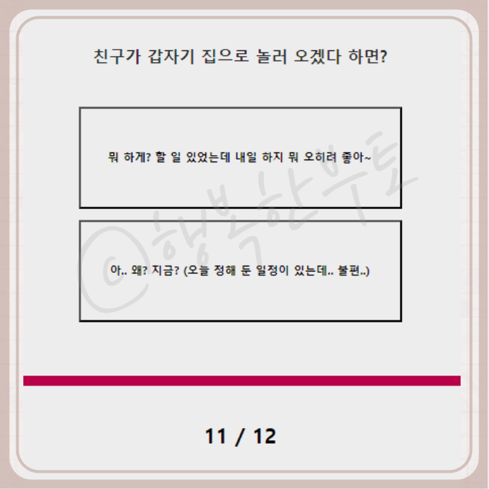저는 사전 고지 없이 사람을 만나는걸 안 좋아합니다. 무조건 아.. 왜? 선택합니다.